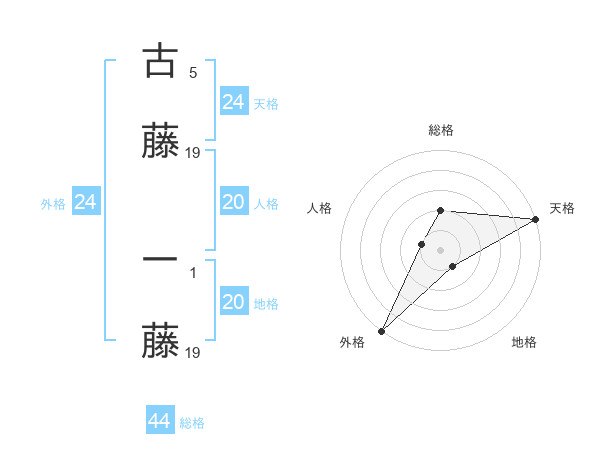 古藤 一藤さんを姓名の画数から五運を鑑定