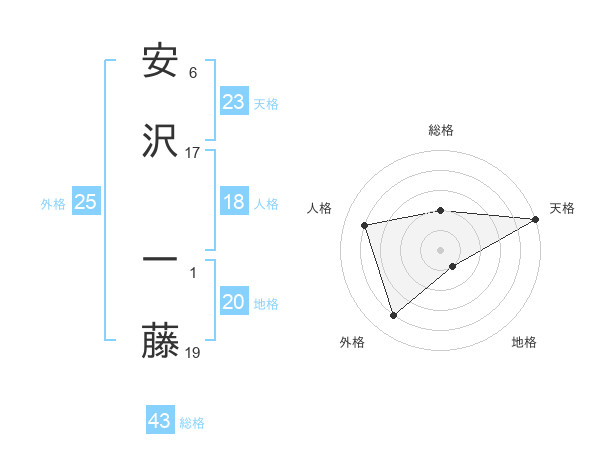 安沢 一藤さんの天格は23画の5点!