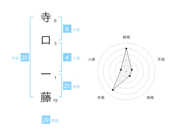 寺口 一藤さんの総格は29画の4点