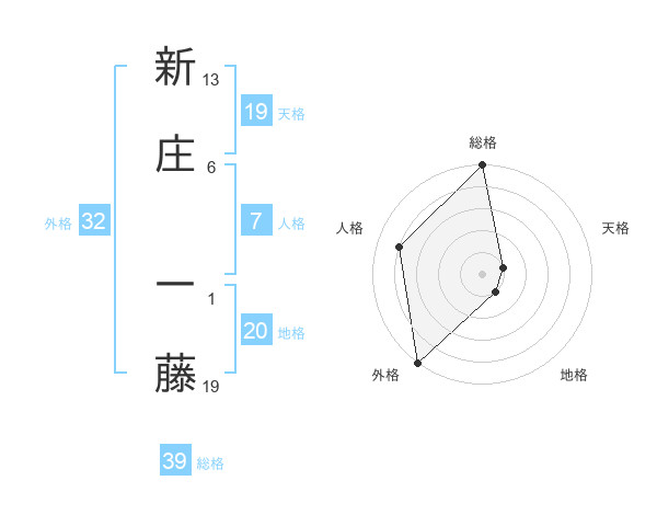 新庄 一藤さんの総格は39画の5点!