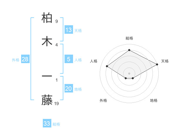 柏木 一藤さんを姓名の画数から五運を鑑定