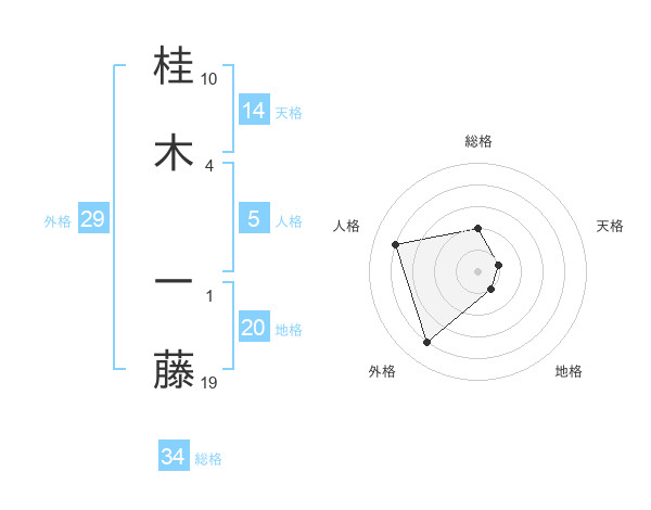 桂木 一藤さんの総格は34画の2点!