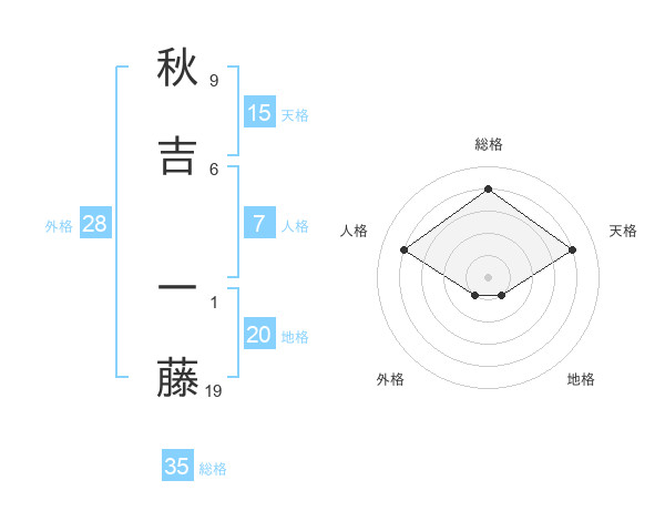 秋吉 一藤さんを姓名の画数から五運を鑑定