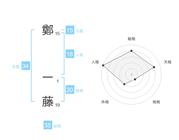 鄭 一藤さんを姓名の画数から五運を鑑定
