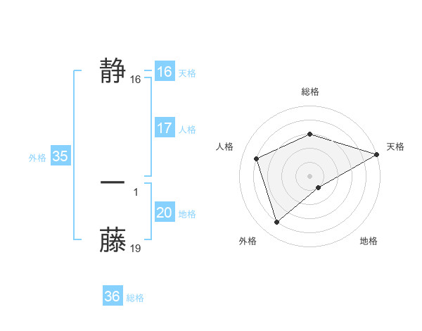 静 一藤さんの天格は16画の5点!