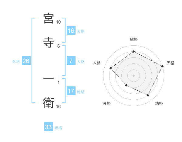 宮寺 一衛さんの総格は33画の4点!