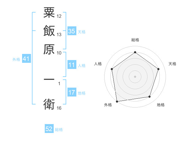 粟飯原 一衛さんの総格は52画の4点!