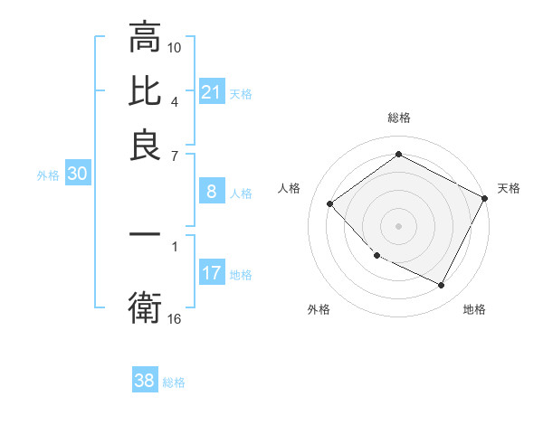 高比良 一衛さんの天格は21画の5点!