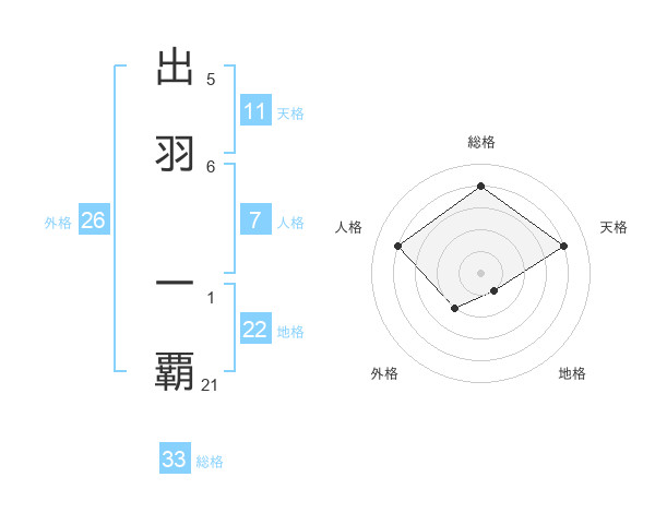 出羽 一覇さんを姓名の画数から五運を鑑定