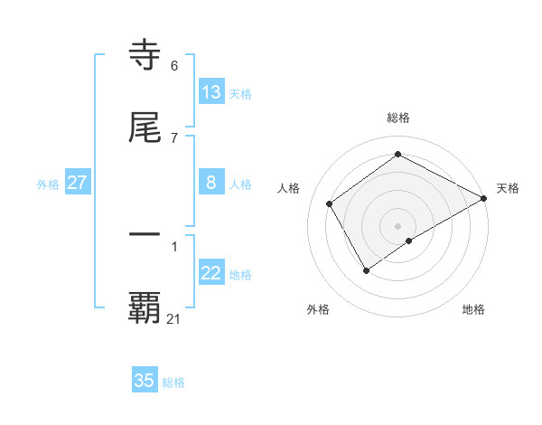 寺尾 一覇さんの天格は13画の5点!