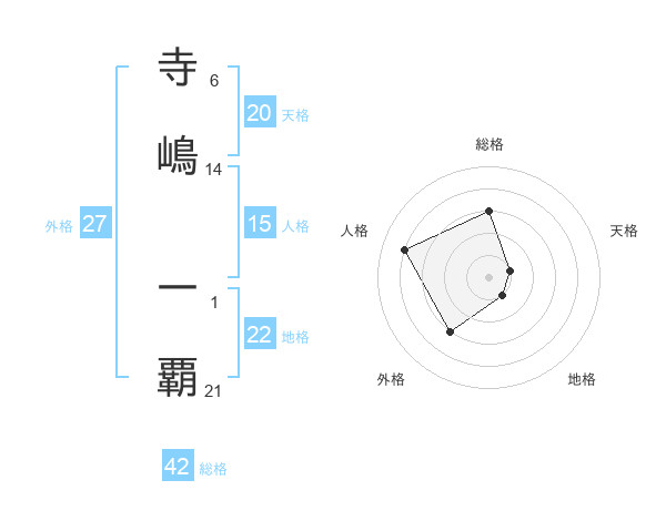 寺嶋 一覇さんの総格は42画の3点!