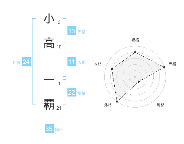 小高 一覇さんの天格は13画の5点!