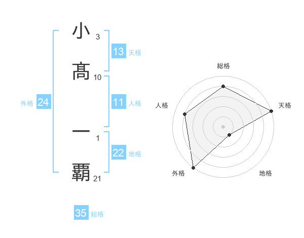 小髙 一覇さんの総格は35画の4点!
