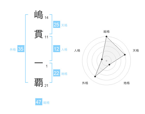 嶋貫 一覇さんを姓名の画数から五運を鑑定