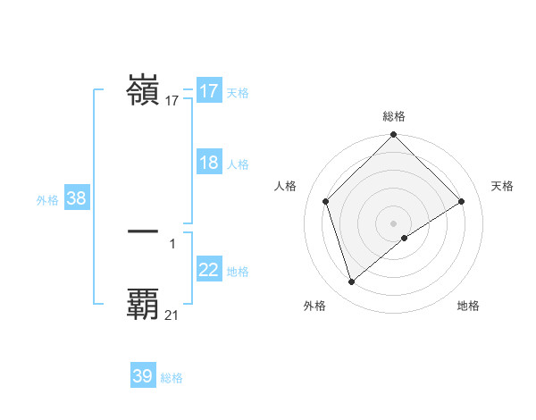 嶺 一覇さんの外格は38画の4点!