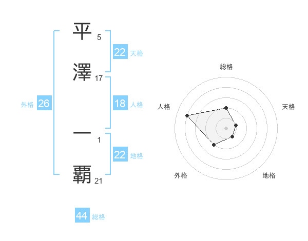 平澤 一覇さんを姓名の画数から五運を鑑定