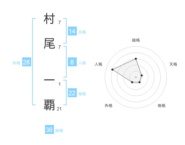 村尾 一覇さんの地格は22画の1点!