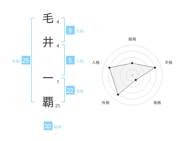 毛井 一覇さんを姓名の画数から五運を鑑定