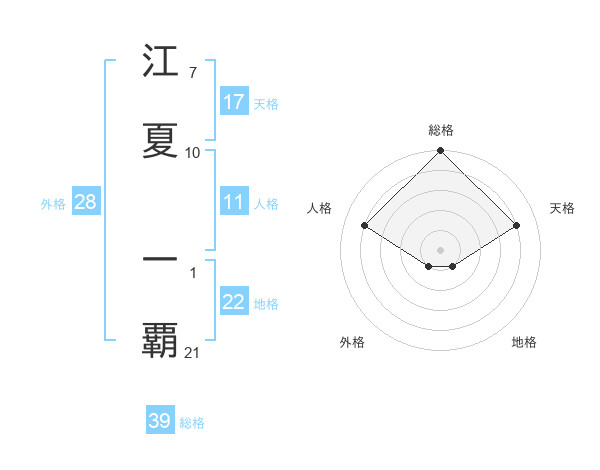 江夏 一覇さんを姓名の画数から五運を鑑定