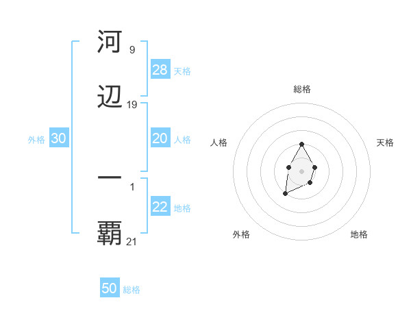 河辺 一覇さんの総格は50画の2点!