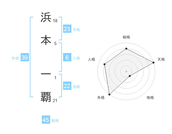 浜本 一覇さんの総格は45画の4点!