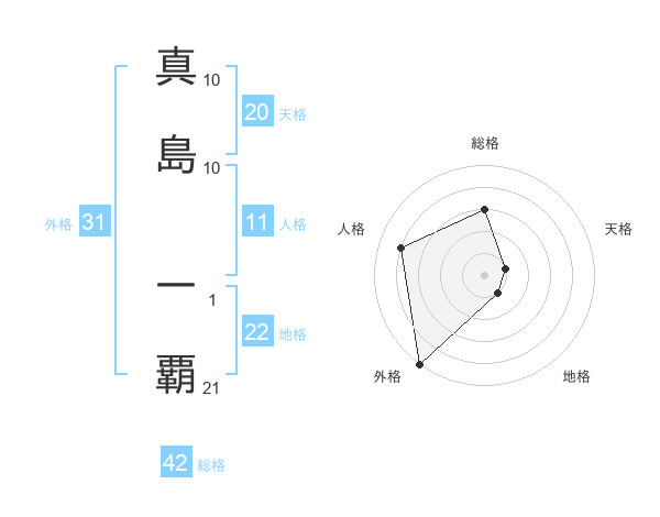 真島 一覇さんの外格は31画の5点!