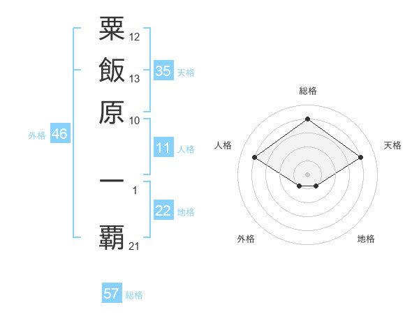 粟飯原 一覇さんを姓名の画数から五運を鑑定