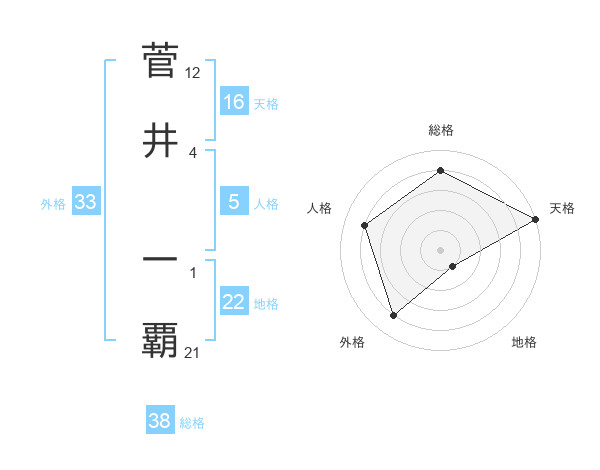 菅井 一覇さんの総格は38画の4点!