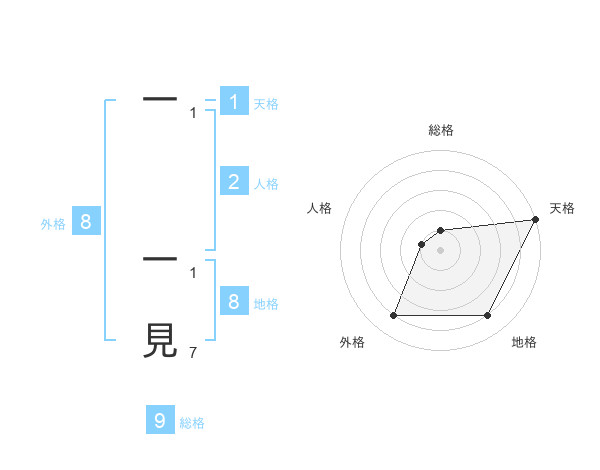一 一見さんの総格は9画の1点!