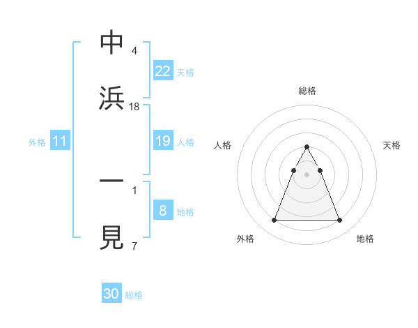 中浜 一見さんの総格は30画の2点!
