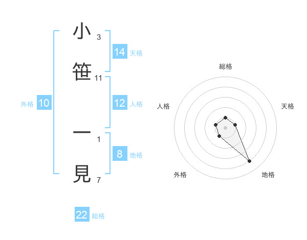 小笹 一見さんの総格は22画の1点!