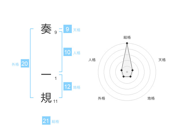 奏 一規さんの総格は21画の5点!