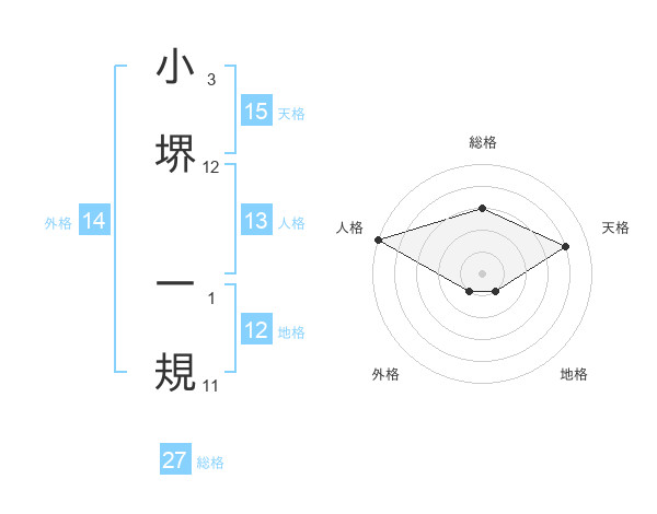小堺 一規さんの総格は27画の3点