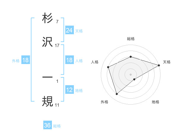 杉沢 一規さんを姓名の画数から五運を鑑定