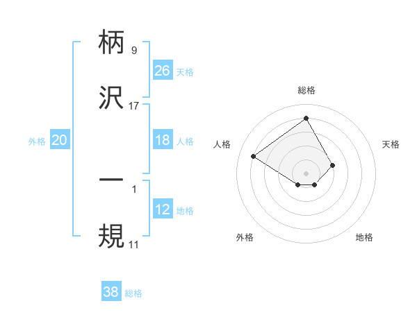 柄沢 一規さんを姓名の画数から五運を鑑定
