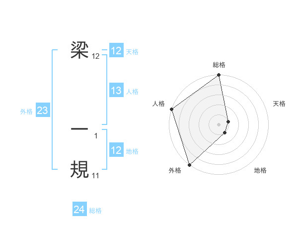 梁 一規さんの外格は23画の5点!