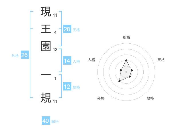 現王園 一規さんの天格は28画の1点