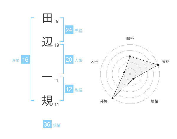 田辺 一規さんの外格は16画の5点!