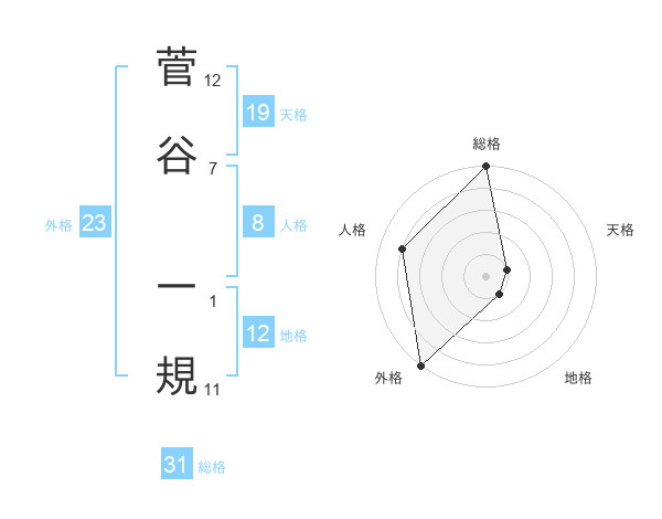 菅谷 一規さんの総格は31画の5点