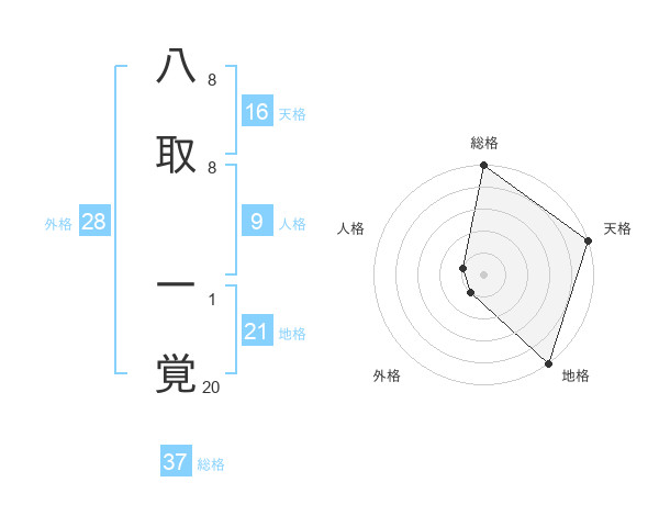 八取 一覚さんの総格は37画の5点!
