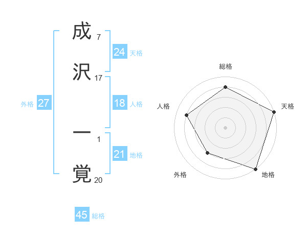 成沢 一覚さんの総格は45画の4点!