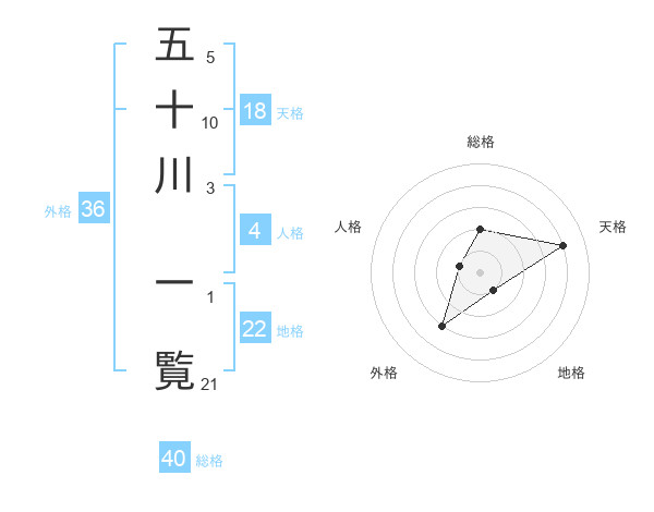 五十川 一覧さんを姓名の画数から五運を鑑定