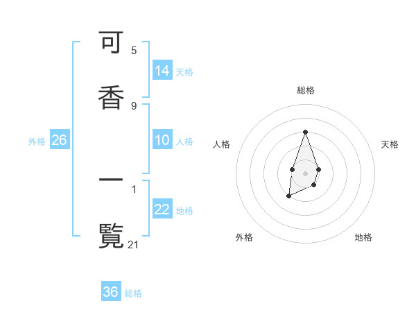 可香 一覧さんの天格は14画の1点!