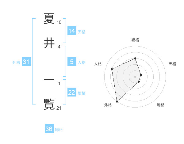 夏井 一覧さんを姓名の画数から五運を鑑定