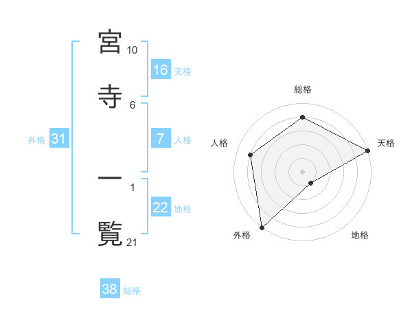 宮寺 一覧さんの総格は38画の4点!