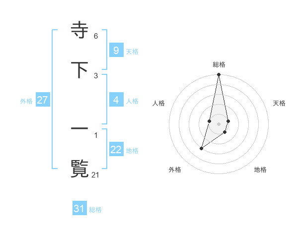 寺下 一覧さんを姓名の画数から五運を鑑定