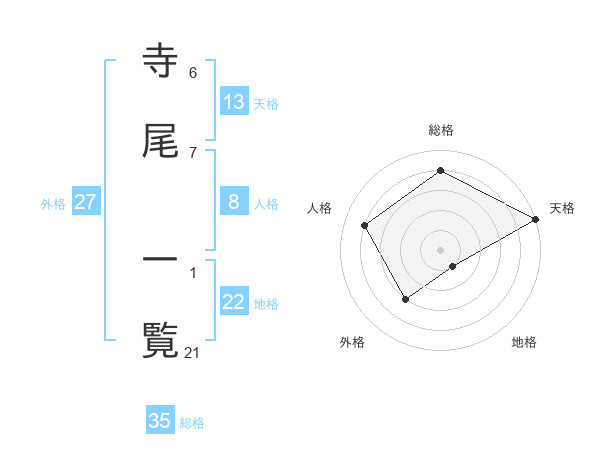 寺尾 一覧さんの天格は13画の5点!