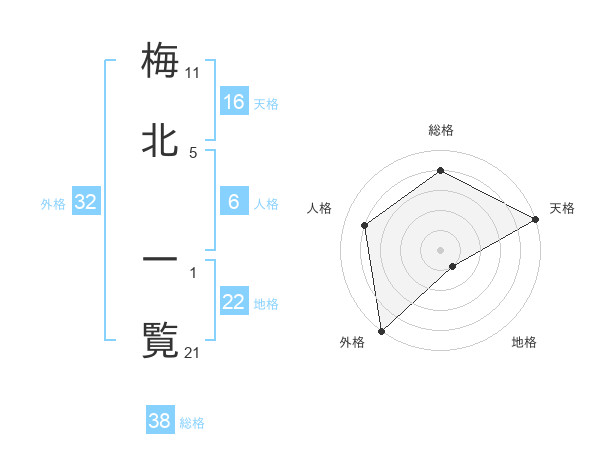 梅北 一覧さんの天格は16画の5点!