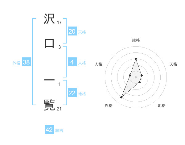沢口 一覧さんを姓名の画数から五運を鑑定