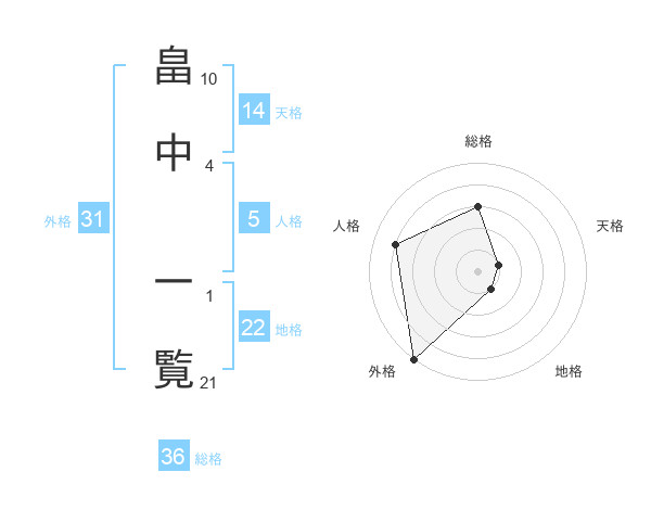 畠中 一覧さんを姓名の画数から五運を鑑定